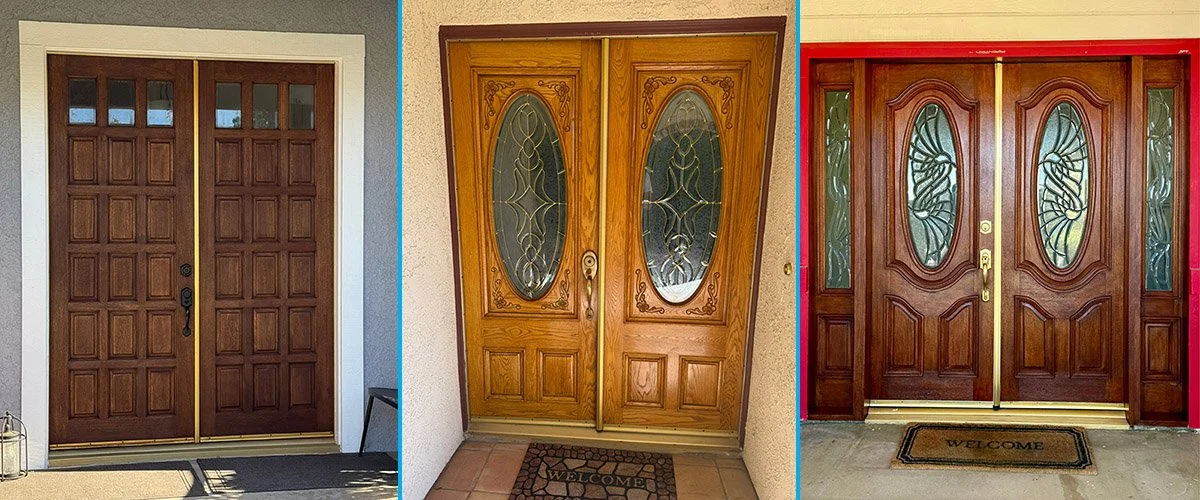 The Antelope Valley’s wind and sun can be tough on stained wood front doors. Recently, the Bob Jobs team refinished three front doors for past customers, restoring their beauty and protecting the wood from further wear. It’s a great example of how refinishing can refresh your home’s curb appeal while saving the cost of full door replacement.